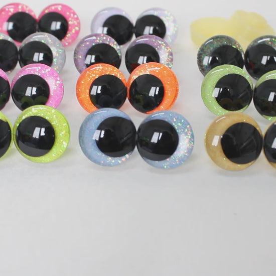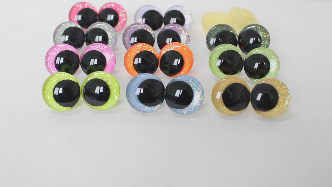 10Pairs Size 12-14-16-18-20-25-30-35-40mm Cartoon 3D Glitter Plush Amigurumi Funny Eyes Safety Eyes Black Pupil Eyes with Washer