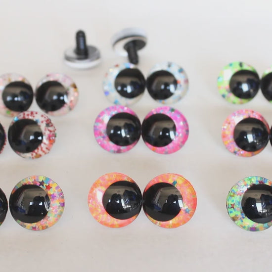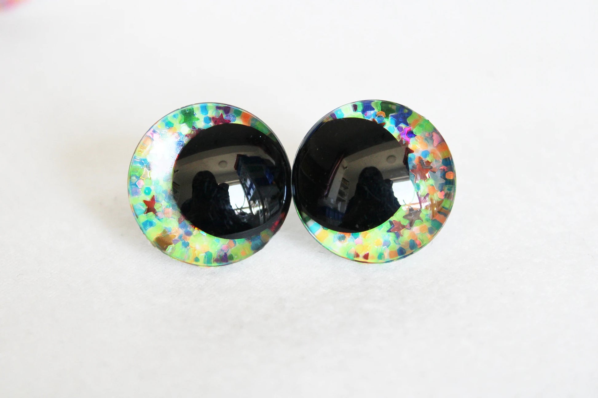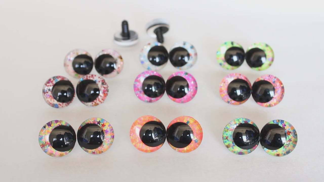 10Pairs Size 12-14-16-18-20-25-30-35-40mm Cartoon 3D Glitter Plush Funny Safety Eyes with Washer and Glitter Colour #DIY plush amigurumi toy making