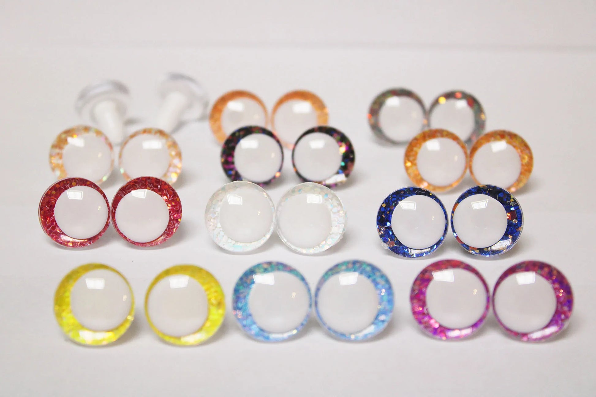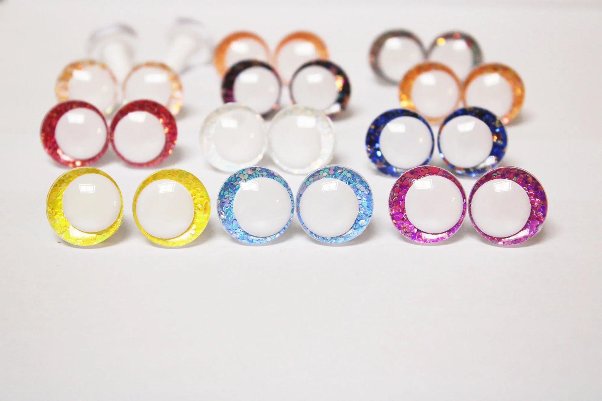 10Pairs Size 14-16-18-20-25-30-35mm Cartoon 3D Round Glitter Plush Funny Toy Safety Eyes with White Pupil Eyes and Glitter Colour and Washer #DIY amigurumi stuffed making