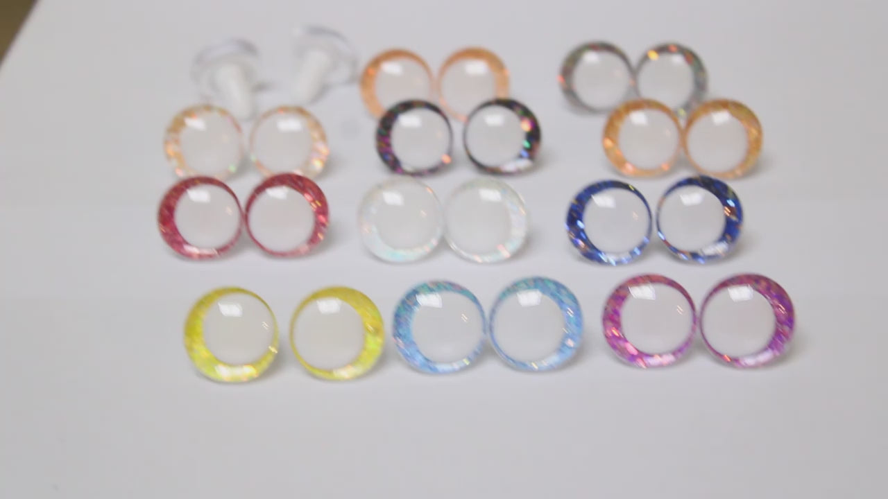 Quantity: 20PCs clear safety eyes[white pupil eyes] + 20PCs hard washer + 20PCs glitter colours