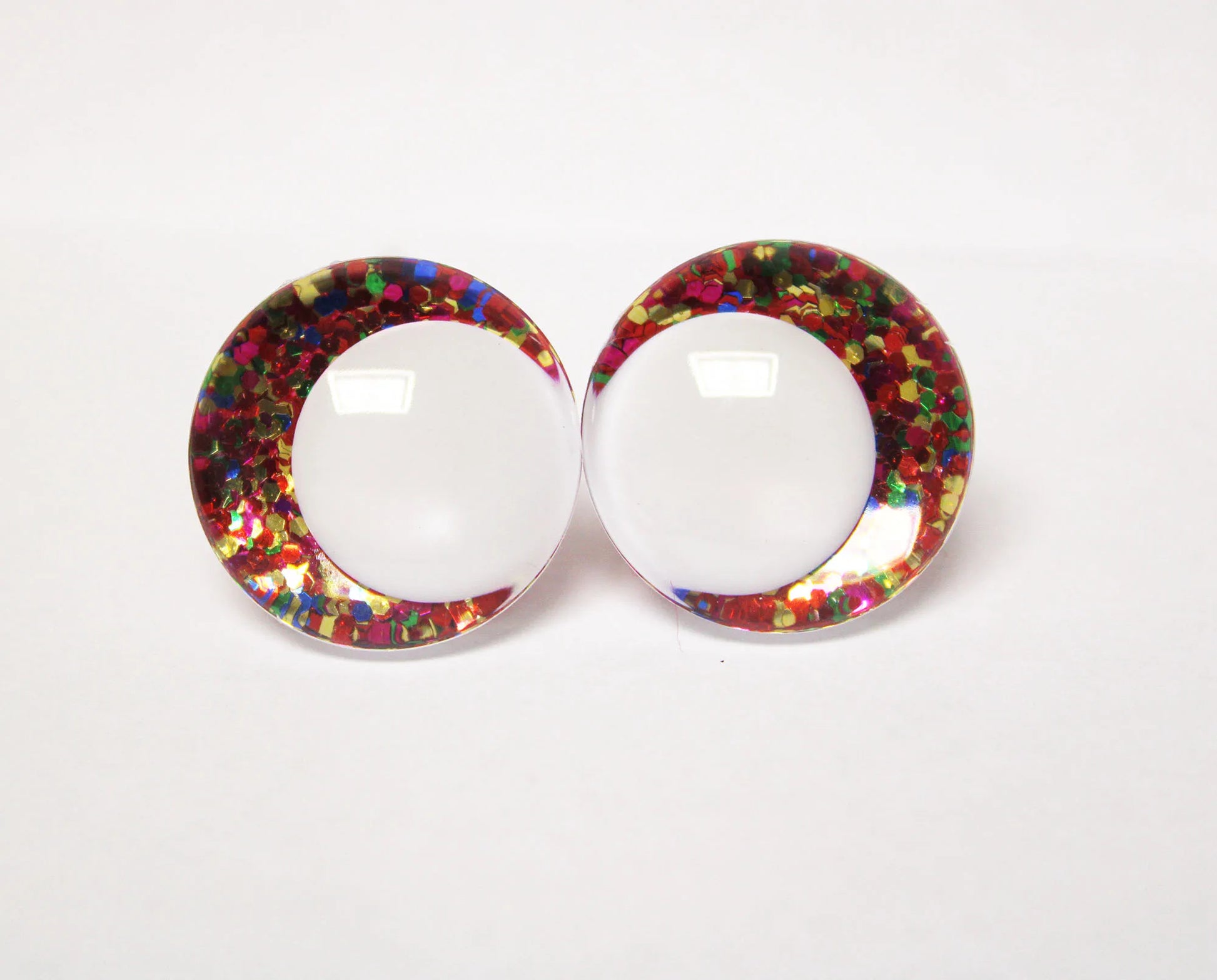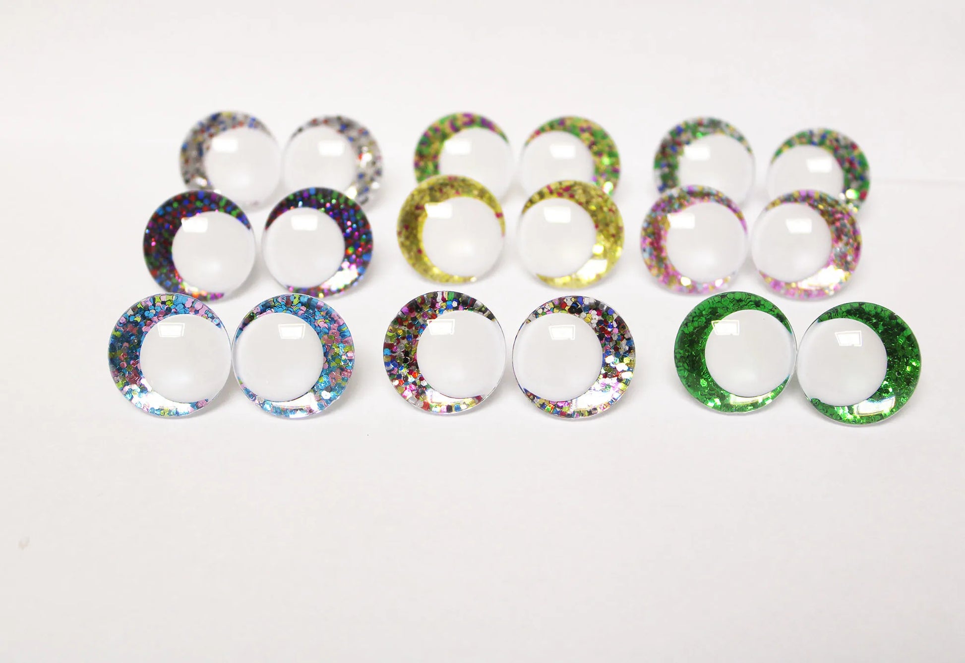 10Pairs Size 14-16-18-20-25-30-35mm Cartoon 3D Round Glitter Plush Funny Toy Safety Eyes with White Pupil Eyes with Glitter Colour and Washer #DIY amigurumi stuffed making