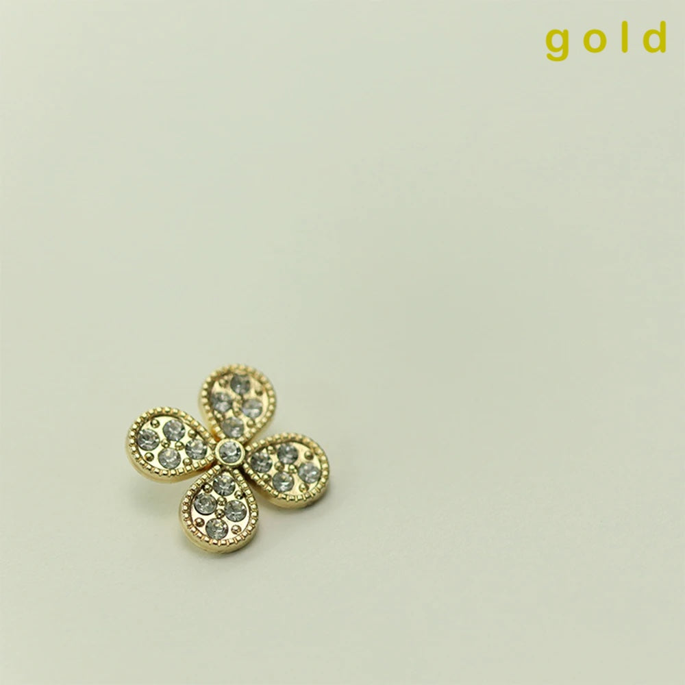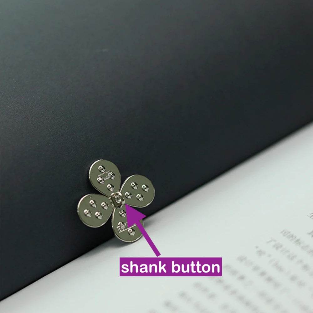 10PCs 12mm 17mm 22mm Rhinestone Metal Shank Button in Gold and Silver Style Clover Leaf