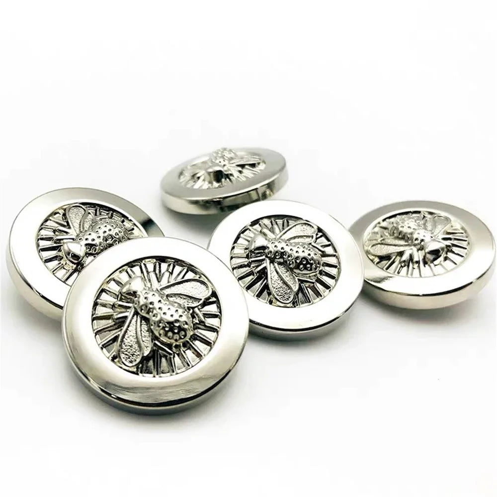 10PCs 15mm 20mm 25mm Gold Metal Button Silver Metal Round Shank Button in Bee Design