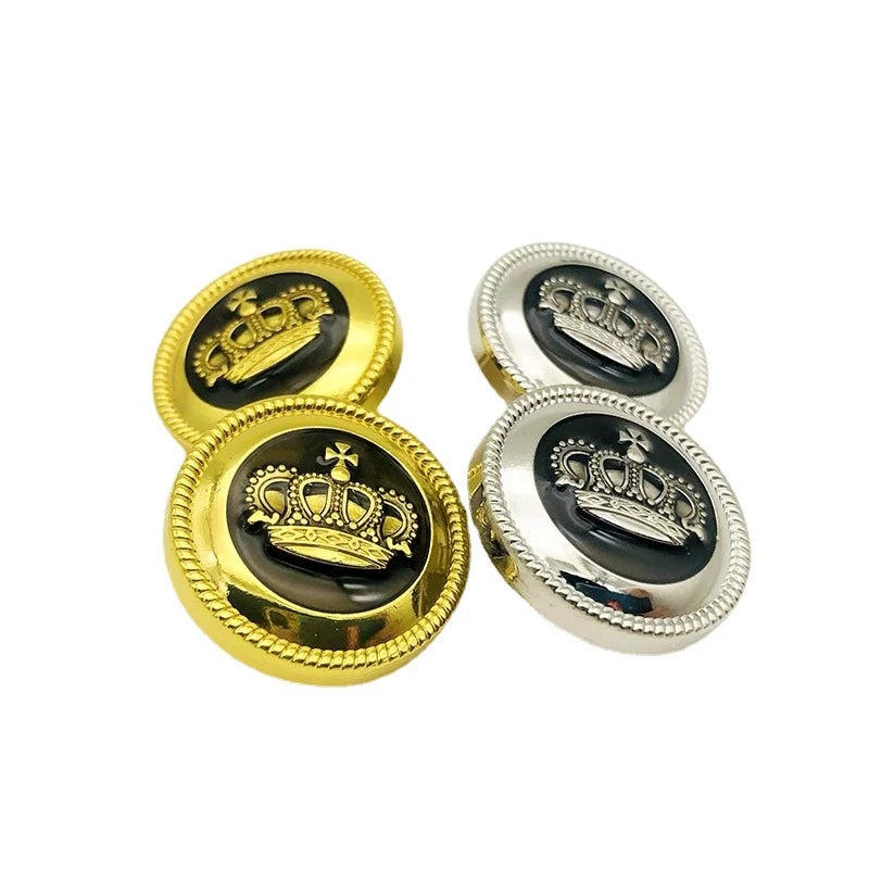 10PCs 15mm 20mm Retro style crown shiny metal button in gold/silver for overcoat clothing blazer jacket sewing clothing buttons