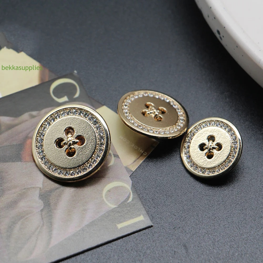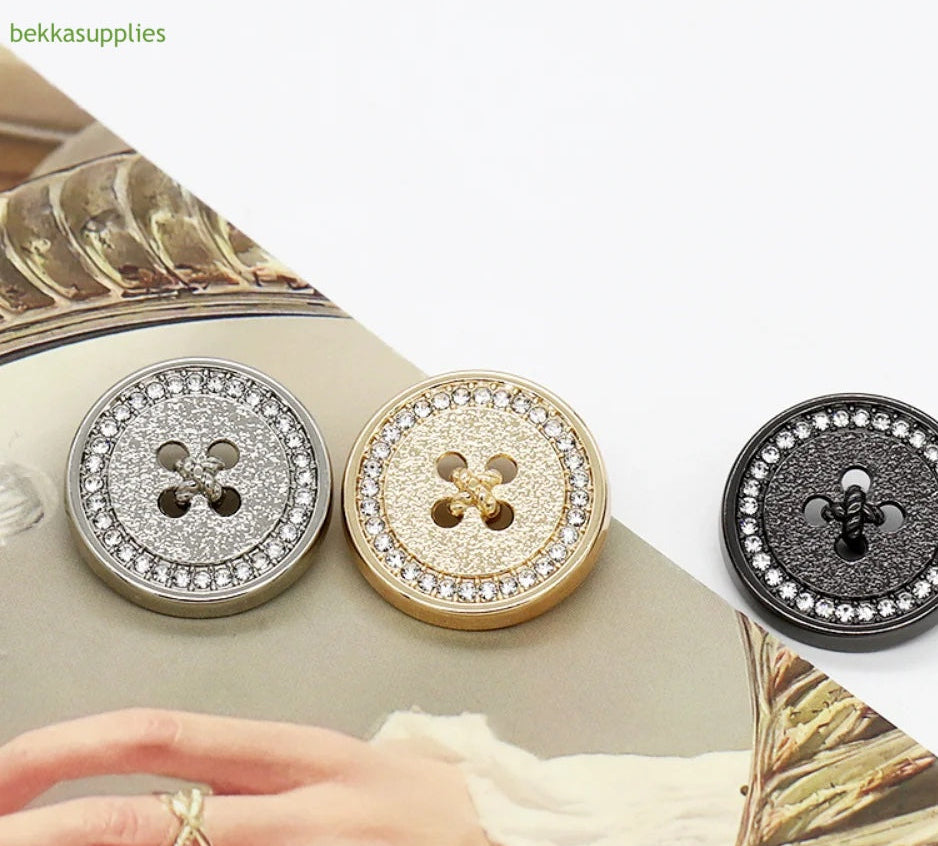 10pcs 15mm 20mm25mm Rhinestone Gold Silver Round Metal Shank Button