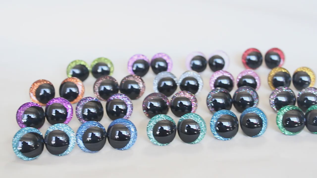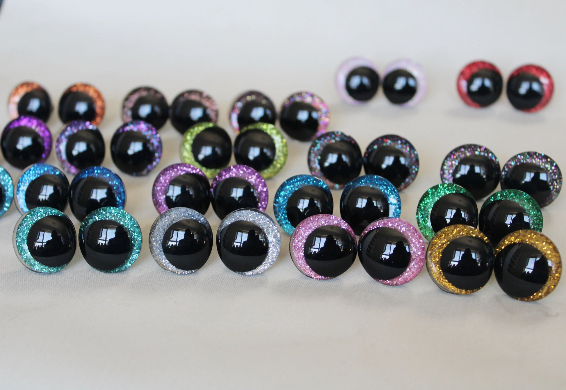 10Pairs Size 12mm 14mm 16mm 18mm 20mm Cartoon 3D Glitter Plush Funny Safety Eyes with washer and glitter colours #DIY Amigurumi Plush making