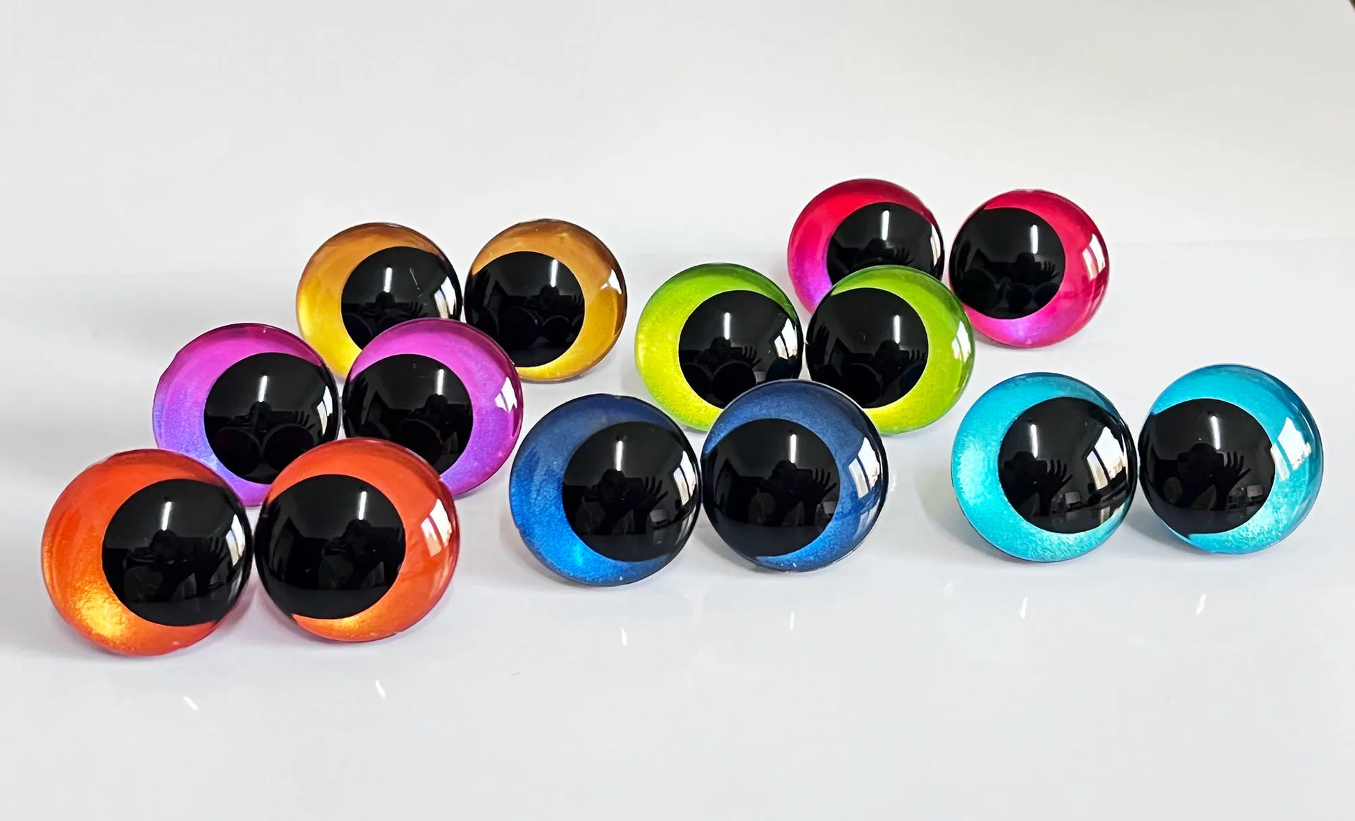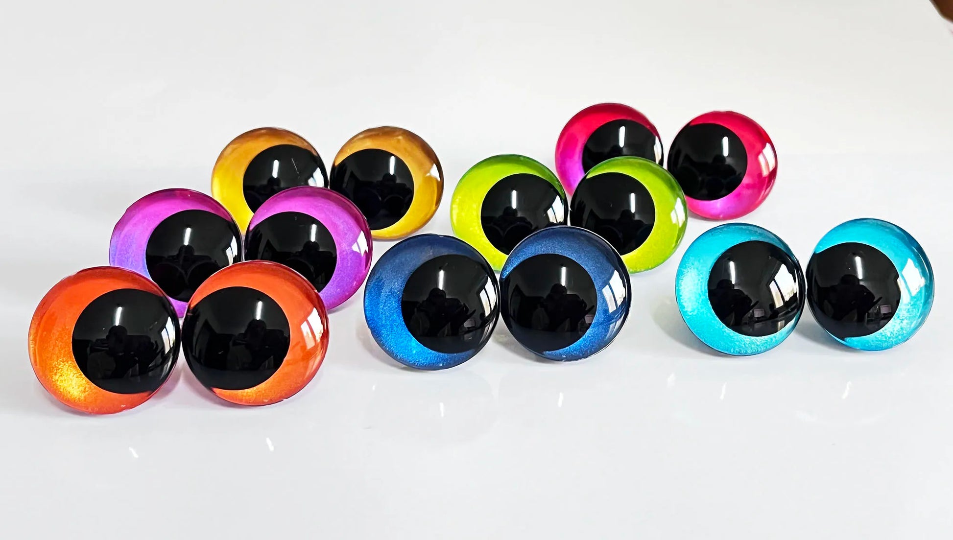 12-14-16-18-20-25-30-35mm 10Pairs Colourful Painted 3D Safety Eyes Black Pupil Eyes and Washer #DIY plush amigurumi doll animal toy making