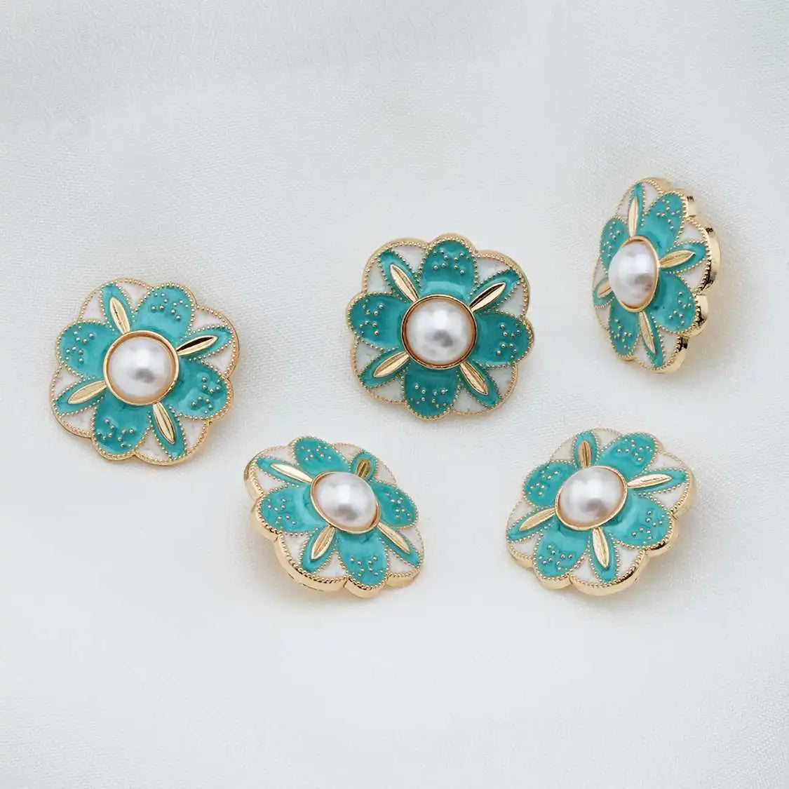 18mm 20mm 5PCs Enamel Metal Button Gold Plating with Colourful Pattern Shank Style