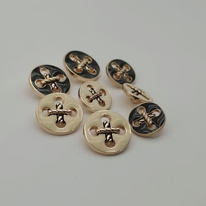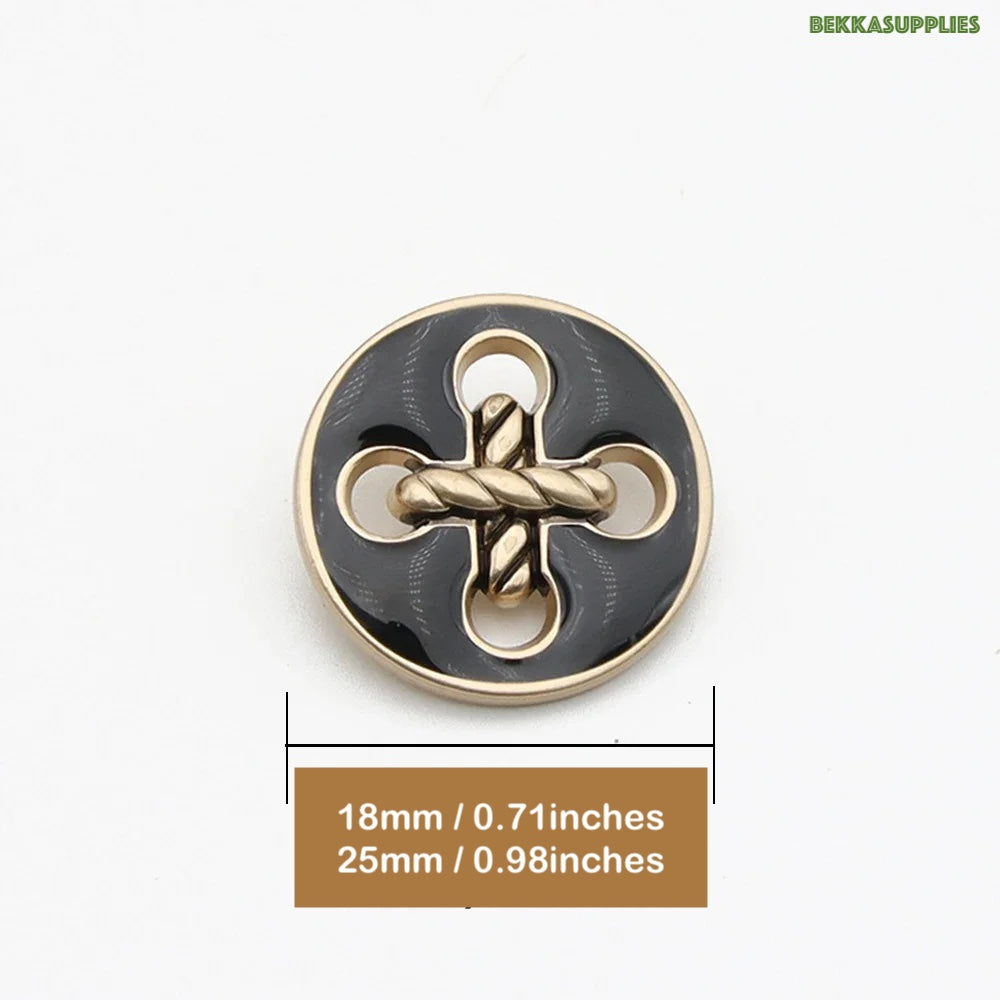 18mm 25mm 10PCs Round Metal Fashion Shank Button with Hollow Cross Design in Black Gold/Cream Gold
