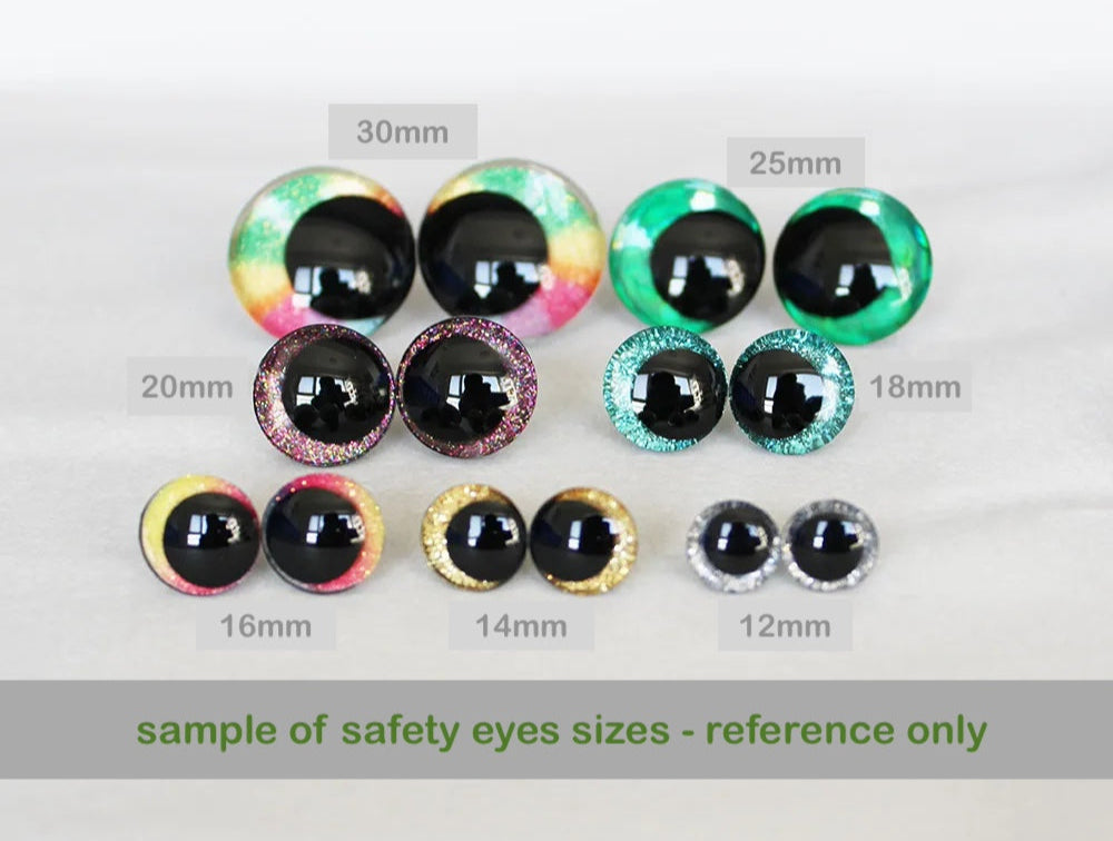 10Pairs Size 25mm 30mm 35mm 40mm Cartoon 3D Glitter Funny Toy Safety Eyes Black Pupil Eyes and Washer #DIY plush amigurumi stuffed craft