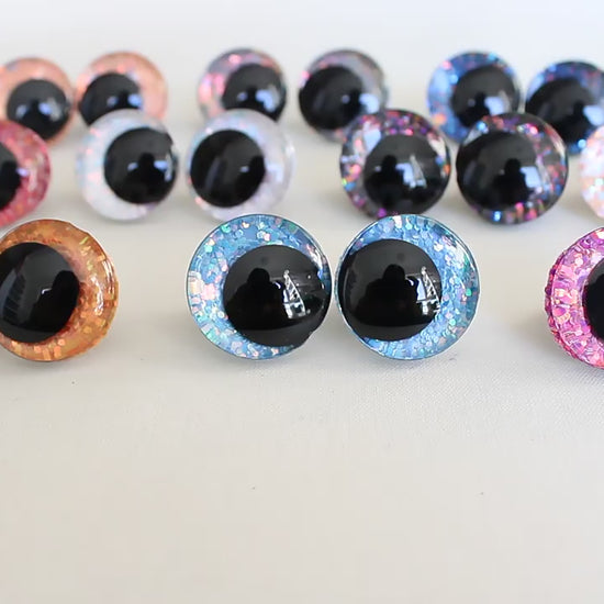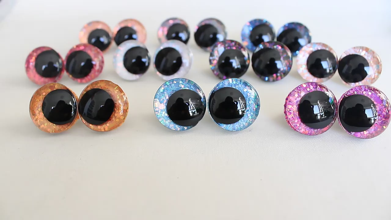 5Pairs Size 12-14-16-18-20-25-30-35-40mm Cartoon 3D Glitter Plush Funny Toy Safety Eyes with glitter colour & washer #DIY amigurmi plush